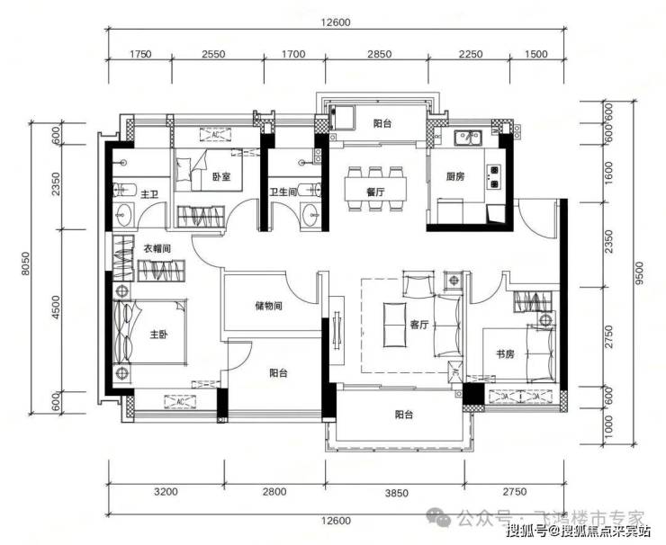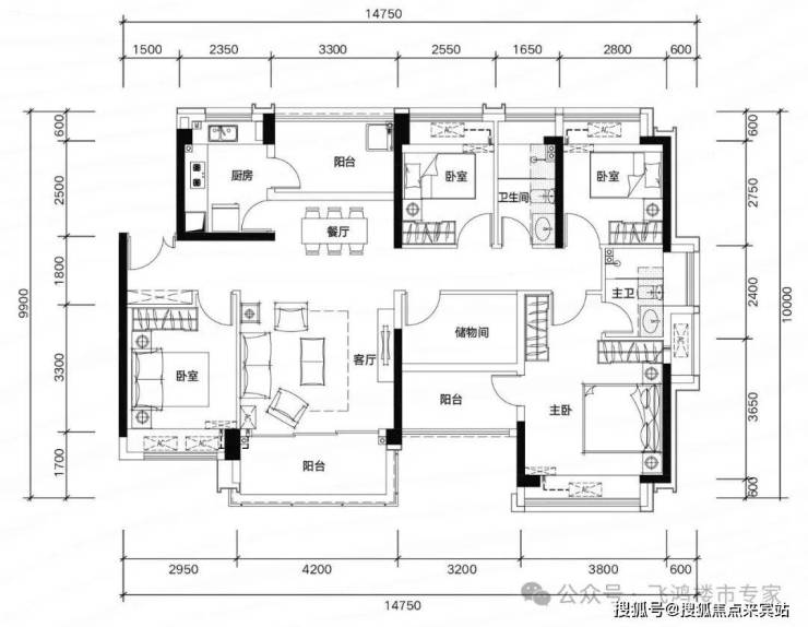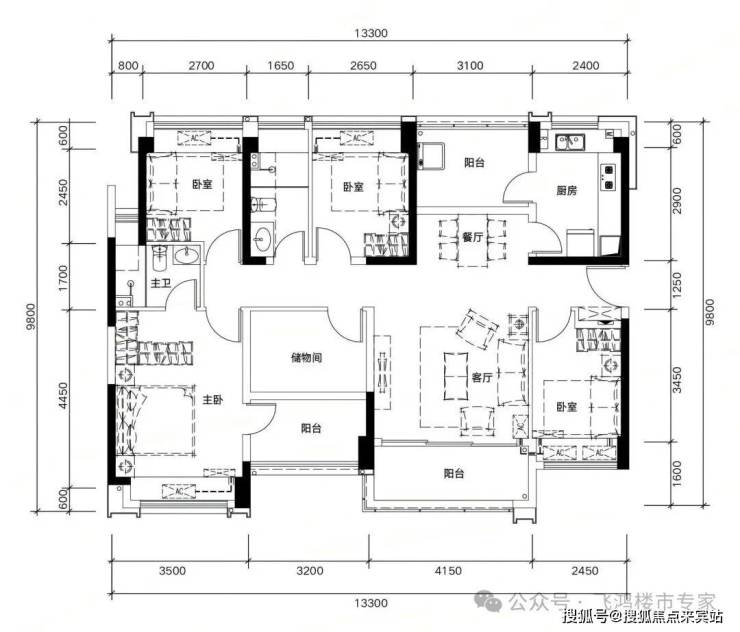 135㎡ 更是实现了五房两卫的楼王级配置,四开间朝南,客厅开间4.2米。