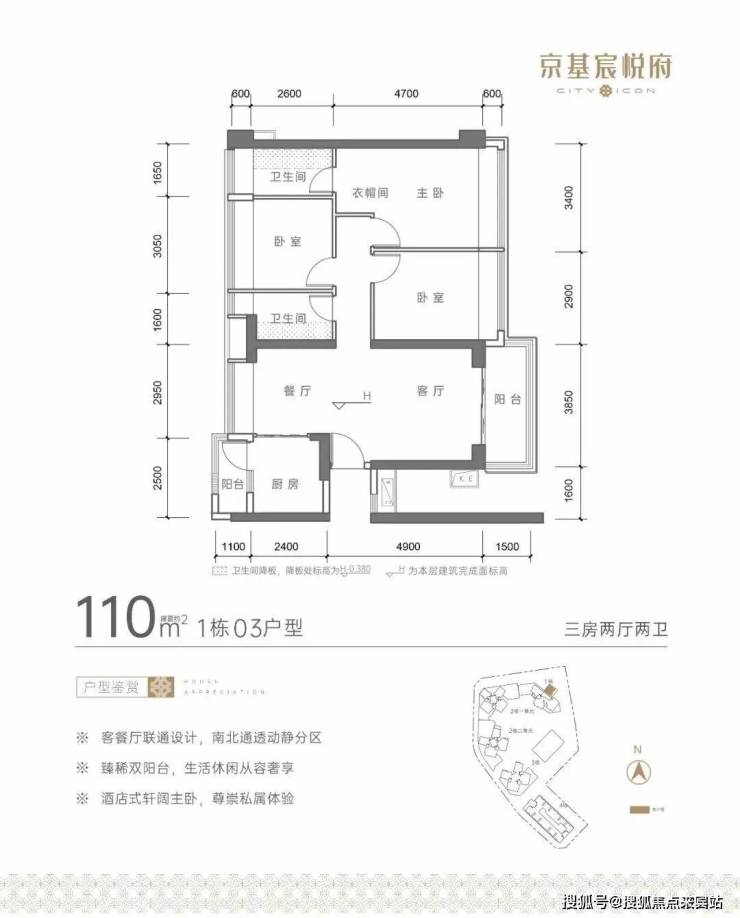 110-114㎡三房:三开间朝南,主卧大套间设计,U型厨房