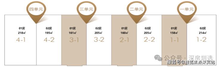 A座:建筑面积约160-220㎡2-3房(南北通透,专梯入户)