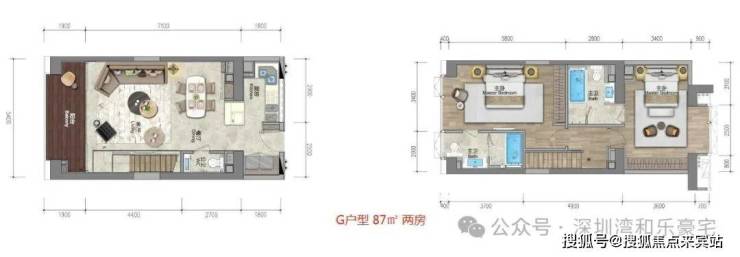 户型设计核心理念体现在三个方面:首先是"立体分隔"的复式结构,实现了传统平层难以达到的动静分区;其次是"极致空间利用率",通过巧妙设计使79㎡户型实际使用面积可达129㎡,利用率提升30%以上;第三是"多功能卫浴配置",户均3.5个卫生间,主卧全部为套房设计。项目定位为"垂直城市综合体",目标客群为追求高品质生活的都市精英阶层,尤其是看重深圳湾区位价值及复式产品稀缺性的高净值人群。