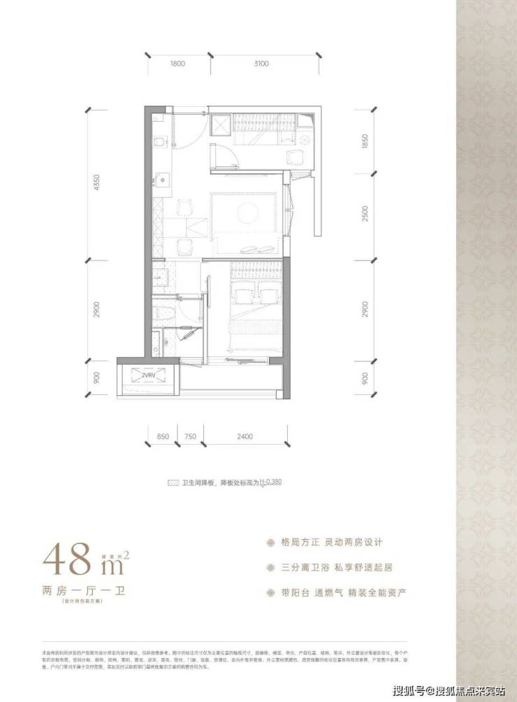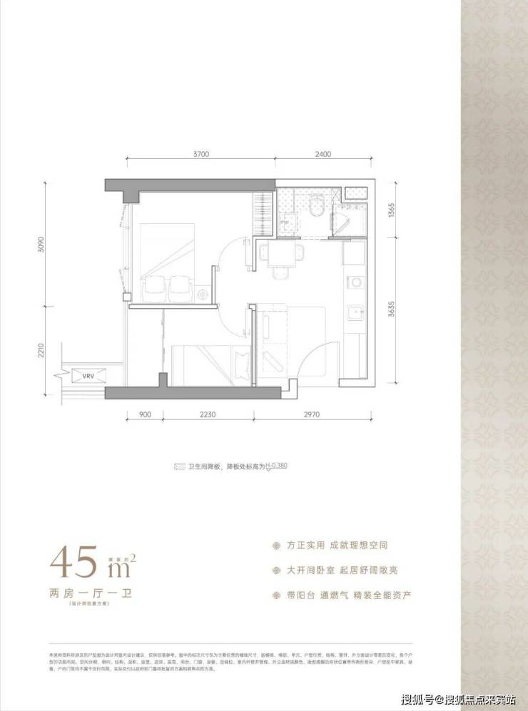 70年产权公寓(宸悦府):45㎡小两房:158-190万;48㎡小两房:175-230万;70㎡两房:285-345万(只有一套44楼)