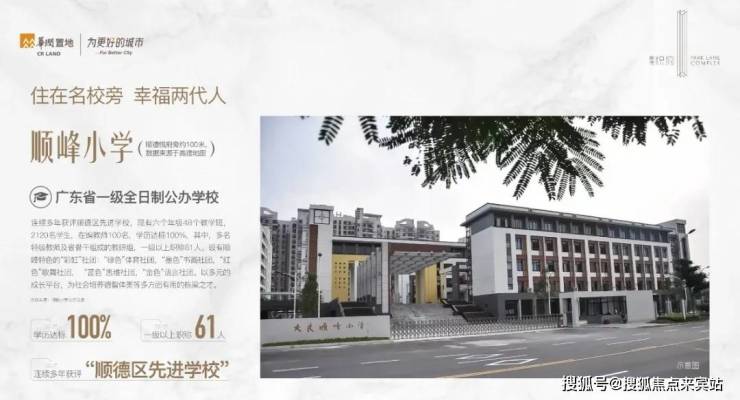 小区门口一路之隔即省一级公办名校顺峰幼儿园,顺峰小学和顺峰初级中学,附近还有大良实验小学,顺德本真未来小学,李兆基中学等;满足孩子3到18岁的全龄段优质教育。地铁一站即可到达顺德第一中学。