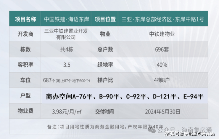物业公司:中铁建物业管理有限公司三亚分公司(物业管理费3.98元)