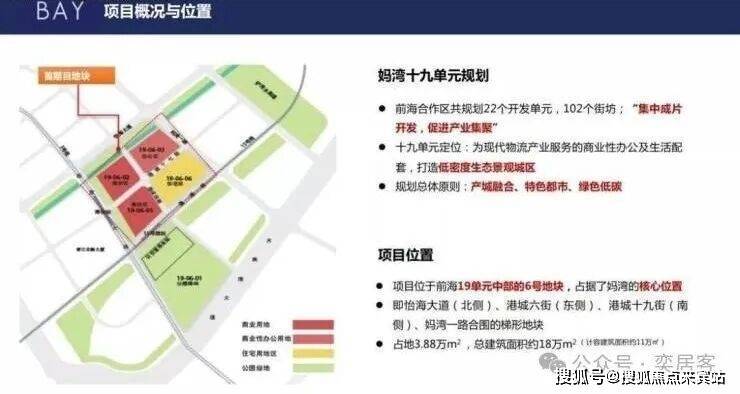 深国际智慧港先期项目位于前海合作区妈湾片区19单元06街坊,港城路与妈湾一路交汇处,由深国际前海置业(深圳)有限公司进行开发,占地面积约4.6万㎡,计容总建面约10万㎡,涵盖写字楼、住宅及多层商业等业态。