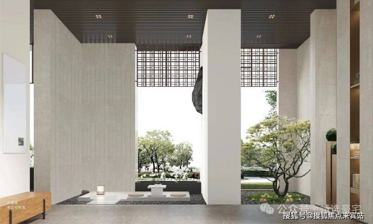 以东方雅韵为出发点,从尺度、比例、制式、材质等细节方面,将新中式建筑精髓与当代格调完美融汇于大门之中;极致挑高尺度,尽显恢弘气度