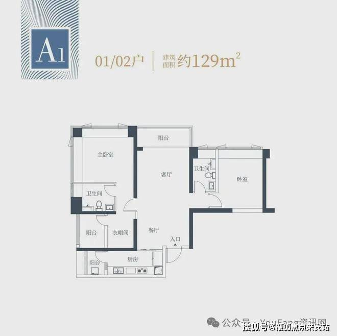 1栋一单元A1、A2户型:面积约为129㎡;