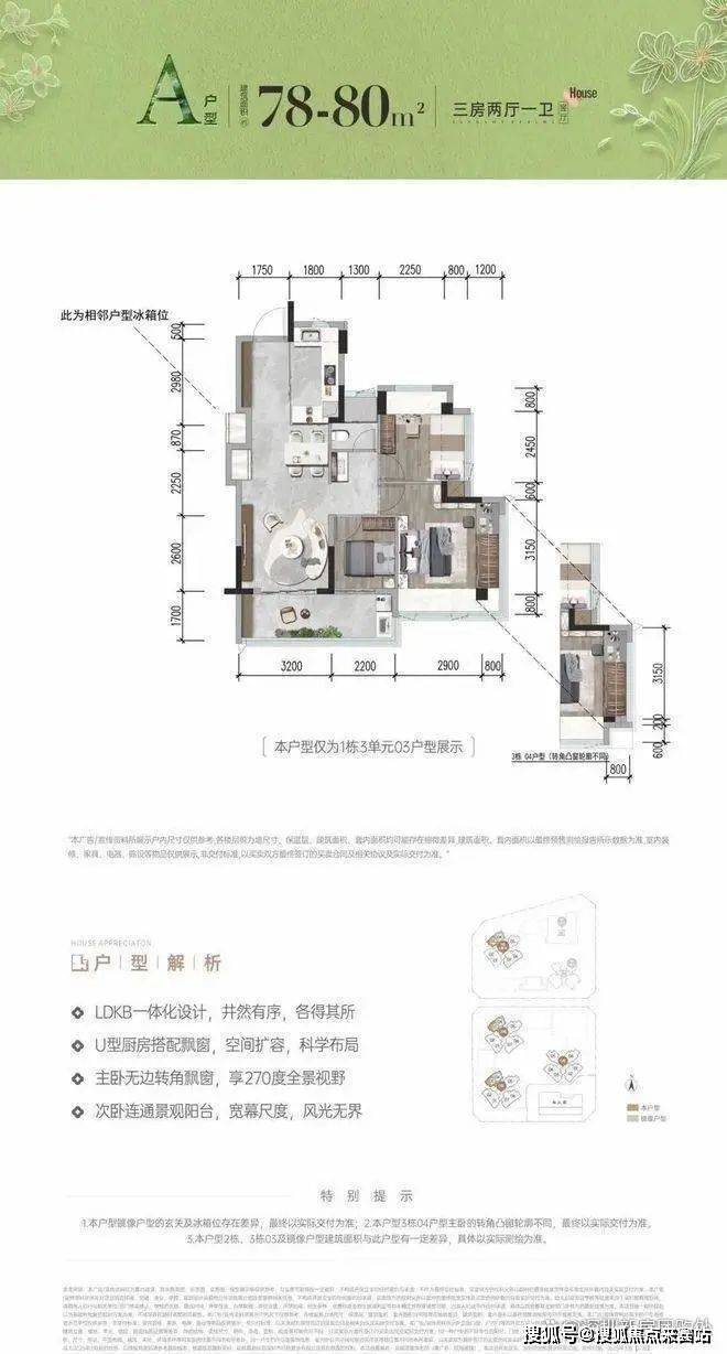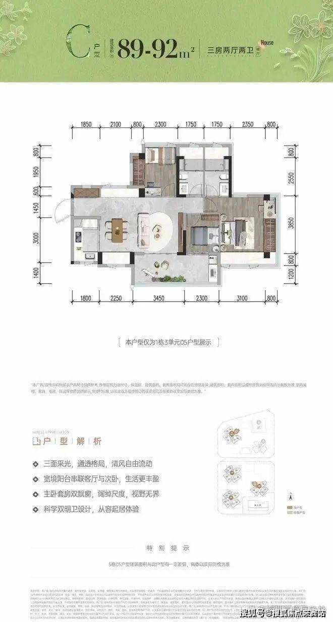 推售1栋3单元,共195套78-92㎡三房,78平三房仅有55套,使用率最高105%!