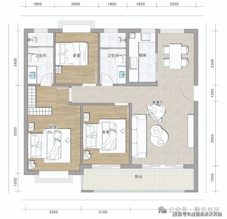 【1#中楼·建面约120㎡, 三室两厅两卫】