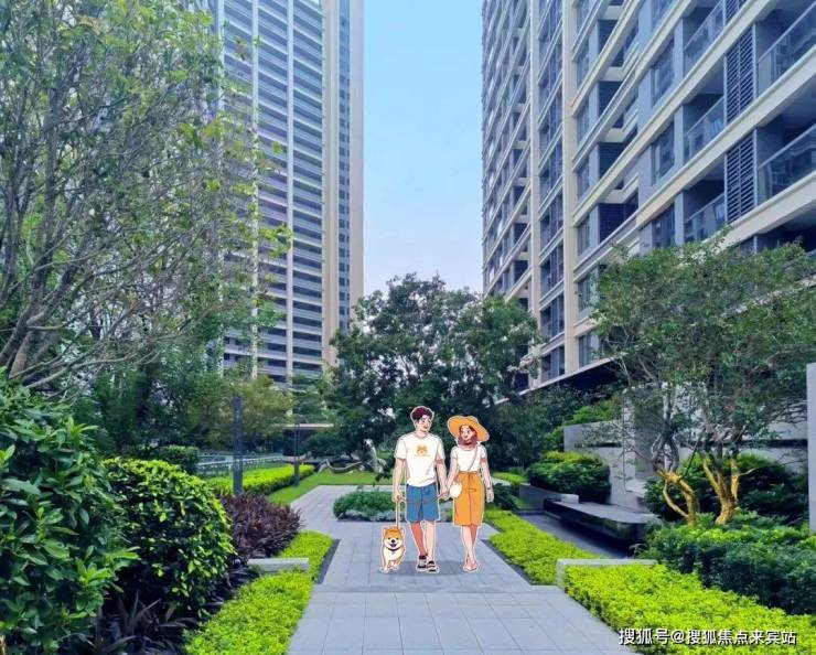 闲暇时,长辈们下楼一起打太极,在一片绿意环绕中,呼吸鲜氧更健康;下班后,一家人在园林散步,孩童们在嬉闹,大人们一旁谈天,好不惬意。