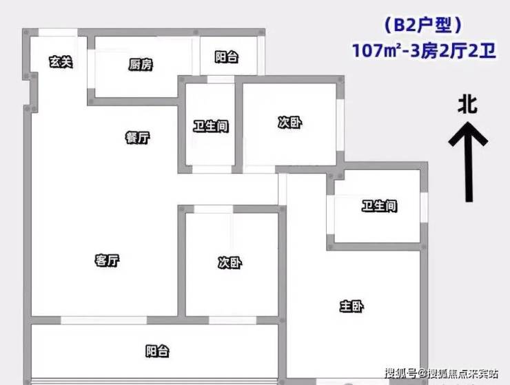 户型B2-107㎡3房2厅2卫