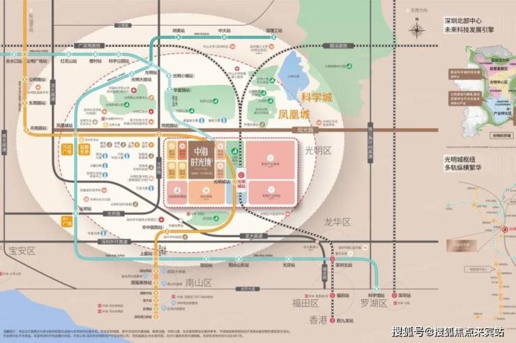 中海时光境花园是中海布局光明的第三个项目,位于光明区凤凰城观光路与科林路交汇处,项目西侧挨着华润润曜府,东南侧是高铁光明城站,约1公里范围内涵盖有光明新城公园,网红点虹桥公园,百花园公园,距离光明城高铁站及13号线“光明城站”约200米。