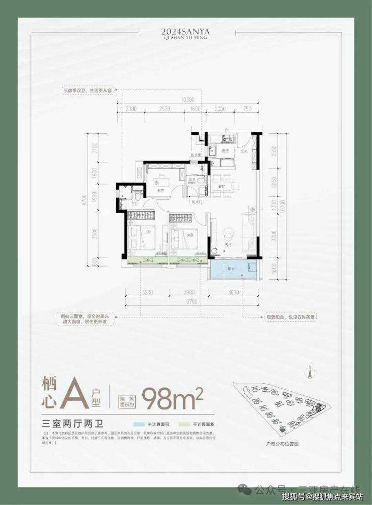 📍栖心 A户型-建面约98㎡ 三室两厅两卫