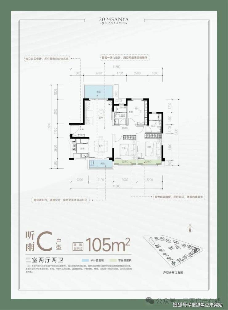 📍 听雨 C户型-建面约105㎡ 三室两厅两卫