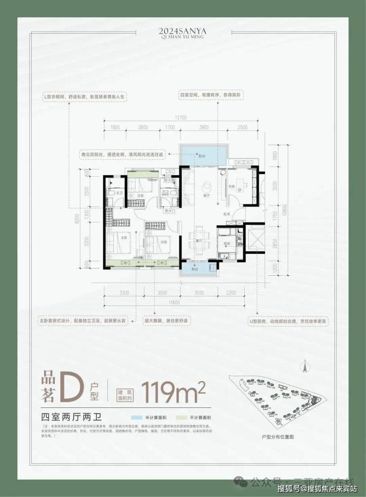📍品茗 D户型-建面约119㎡ 四室两厅两卫