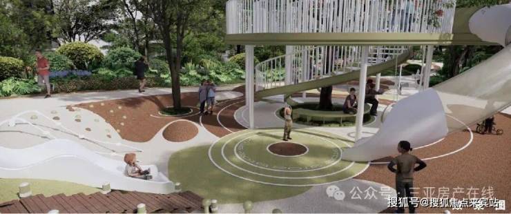 项目将岛屿、雨林、礁石、沙滩、椰风五重海景元素赋予场地景观,以东西贯通的开放空间为主轴打造围合式中央大花园,营造“栖”系生活体系,畅享活力生活场景。