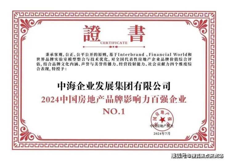 2024年3月中指研究院发布中国房地产企业销售排行榜TOP100,中海地产的各项数据指标均名列第一,中海地产“2023中国房企交付力第一名”。2024年7月荣获“2024中国房地产企业品牌价值百强企业第一名”,还获评“2024 中国房地产品牌社会贡献力企业”殊荣。(数据来源:中国房地产报联合专业房地产品牌测评机构)