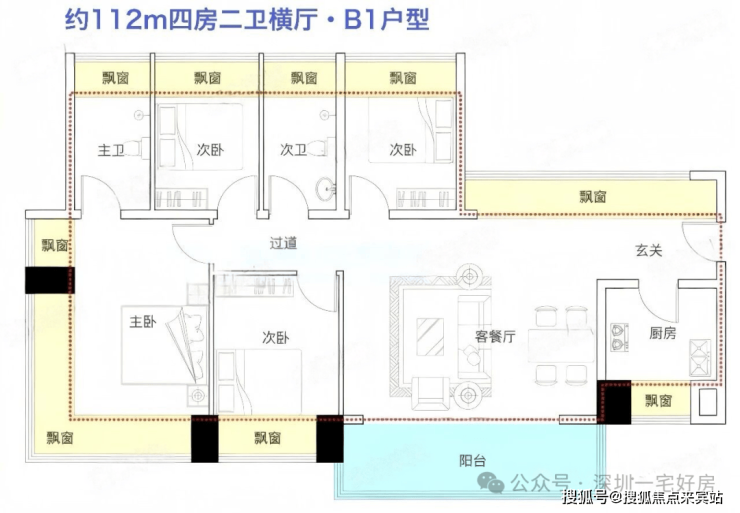 B1户型|112㎡ 4房2厅2卫(满赠横厅旗舰)