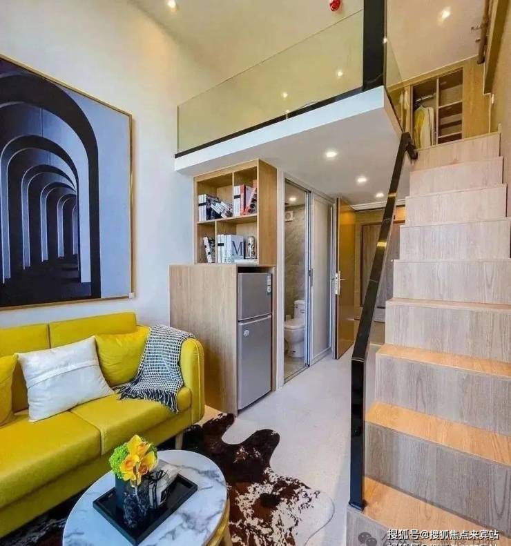 A-1户型品鉴:3.6米层高,单面采光,上下分层布局合理,收纳、起居、空间相对独立。较高的采光高度,足以满足室内自然光线的明亮,小阳台也可完全满足日常外界接触空间和晾晒的需求。