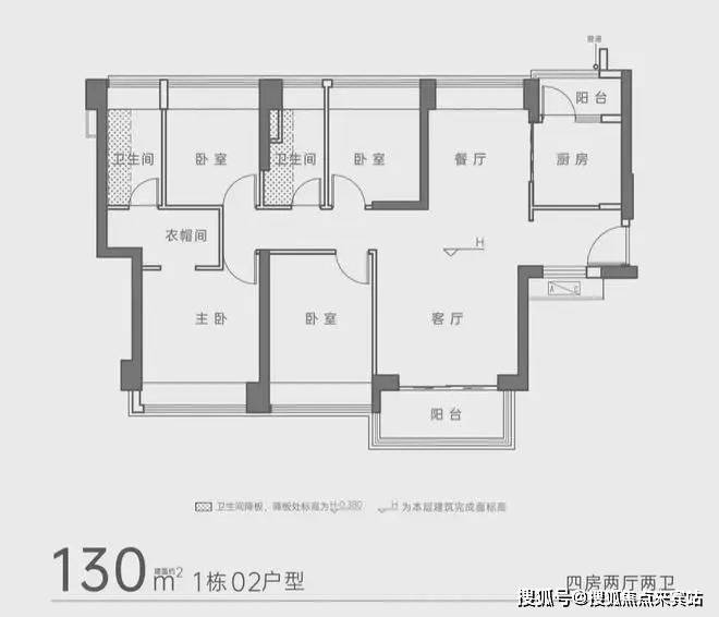 住宅由4栋48层建筑组成,分别是1栋、2栋1/2单元和3栋,3梯5/6户,4栋是商务公寓45F(1470户),5栋是幼儿园。