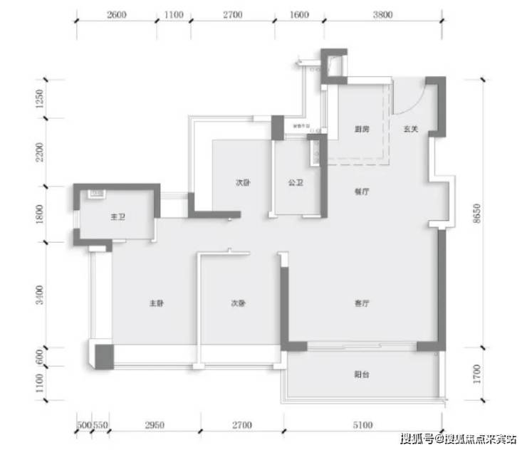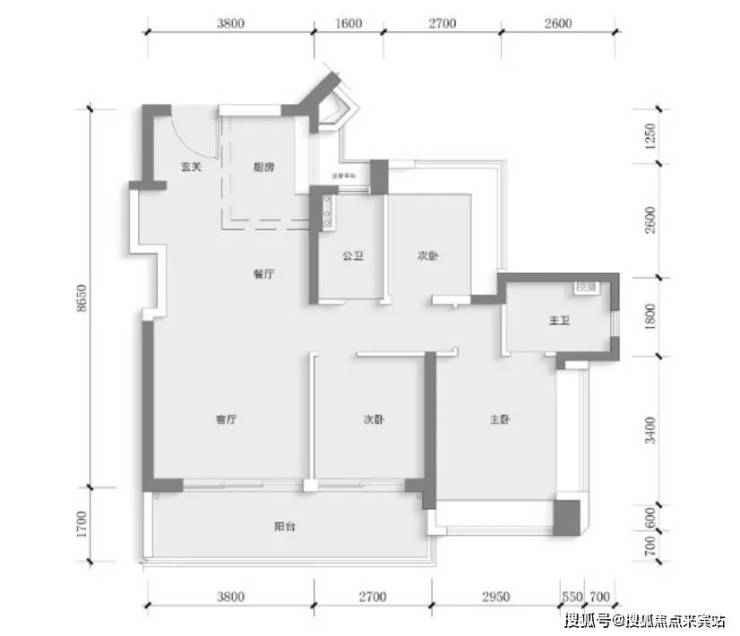 【88㎡3房2厅2卫】:经典的竖厅结构,动静分区。