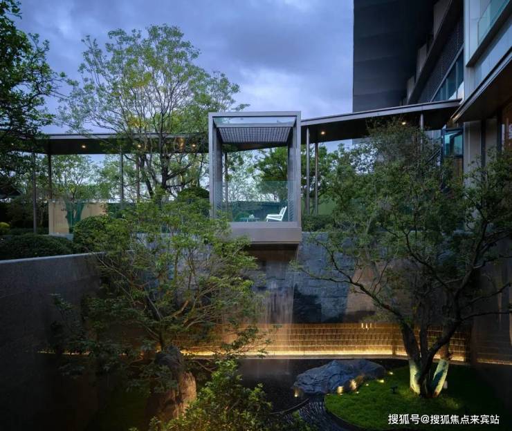 以“天圆地方”为设计理念,跌瀑水幕演绎道法自然的东方哲学