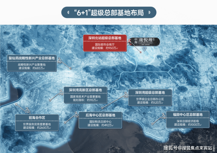 ●深圳北站超级总部基地:深圳6+1超级总部基地之一,建面约950万㎡*,是链接大湾区的超级枢纽总部CBD,规模仅次于前海合作区。