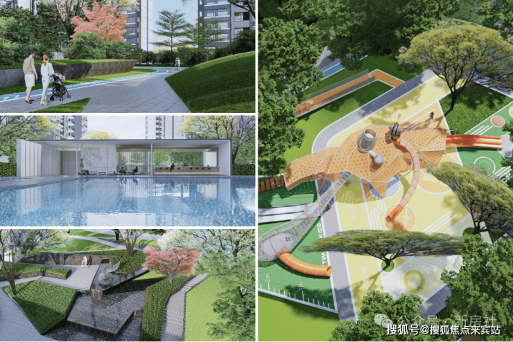 约3,600㎡全龄段主题乐园,2,700㎡双阳光草坪,720米健康环氧跑道,采用心旅启点入口展示区、酒店式休闲度假区、全龄段主题活动区、植说心语组团花园区等四大主题分区,贯穿社区入口到大堂归家全动线,回归居住本质,目之所及皆风景。
