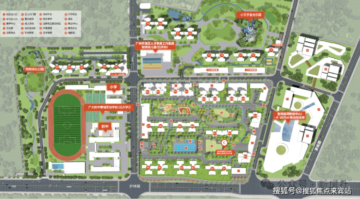 周边就有天河奥林匹克体育中心、黄埔区体育中心及4大生态公园(天河儿童公园、杨桃公园、狮山公园、黄埔公园)等休闲配套,每天打卡不重样。