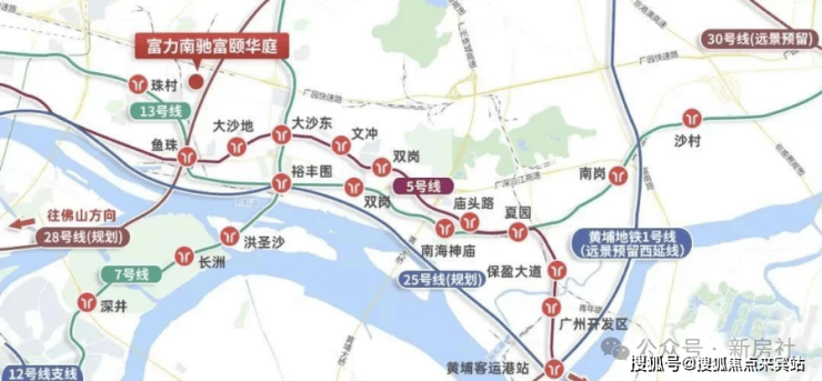除此之外,从项目出发,经由5号线、13号线和28号线(规划)的交汇站鱼珠站,8站可到达珠江新城CBD,沿途有鱼珠商圈、天河城商圈等;而乘坐13号线,8站可以到达新塘综合交通枢纽,可乘坐穗莞深城轨通往深圳、东莞、惠州等周边城市。