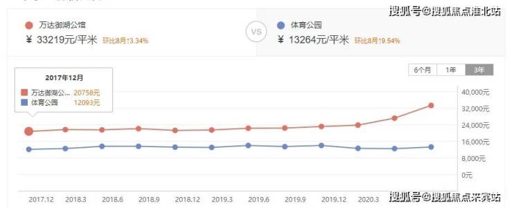据安居客数据显示,寮厦站旁的万达御湖公馆,2017年12月二手单价为20758元/㎡,2020年9月二手单价33219元/㎡,其涨幅为60%!