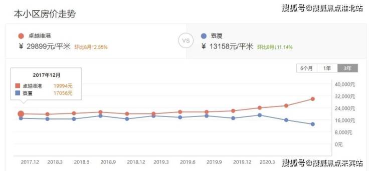 卓越维港距陈屋站约700米,2017年12月二手单价为19994元/㎡,2020年9月二手单价29899元/㎡,其涨幅为49.5%。