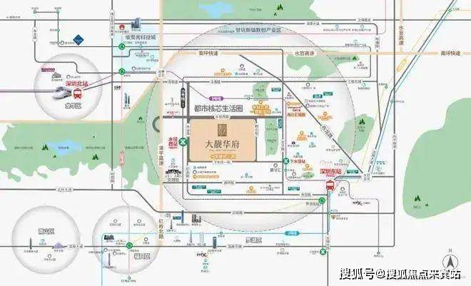交通配套:大靓华府紧邻清平高速入口(500米),自驾30分钟可达福田;现有地铁5号线“下水径站”距离约1.5公里,需公交接驳;1公里内有10个公交站,覆盖5条地铁线(含3、14、10号线换乘),地铁25号线(规划中)设“水径西站”距项目仅200米,建成后可串联坂田科技城,但建设周期未定。