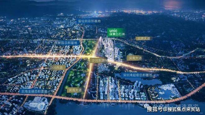 绿景白石洲位于深圳核心位置南山区的华侨城片区,深圳城市发展主轴——深南大道与大沙河创新走廊十字交汇点,依托华侨城人文艺术城区,链接后海总部基地、深圳湾超级总部基地、留仙洞总部基地、高新园总部基地四大总部基地。