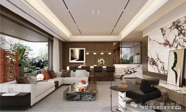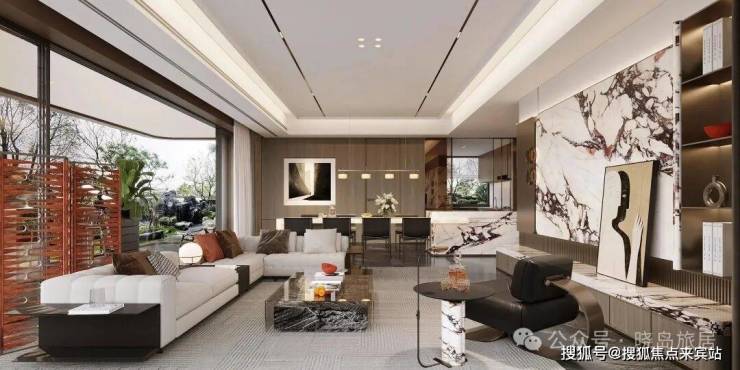 公区以海派为笔触,染现代之气韵,融汇成一方优雅生活的序章