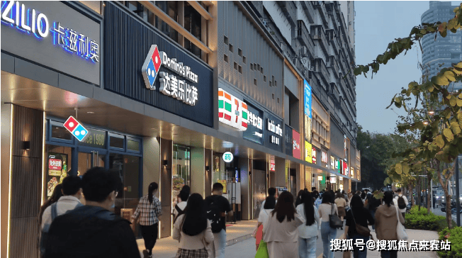 肯德基、达美乐、7-11、中国电信、中国联通、瑞幸咖啡、三两粉、拾柒点冰室、粒上皇、卡滋利奥、绝味鸭脖等,街区月租金收益可达约66万元。