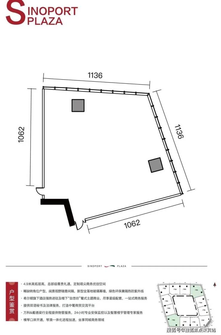 更贴心的是,中葡商贸广场在售层高4.9米建面约146-268㎡总裁会客厅,层高4.9米建面约2300㎡企业总部,即买即入驻,付清全款6小时交房,结清契税7日内拿证,乘风而上不必久候!