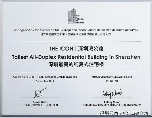 🎉深圳湾公馆荣膺【深圳最高纯复式住宅】——国际权威机构CTBUH认证