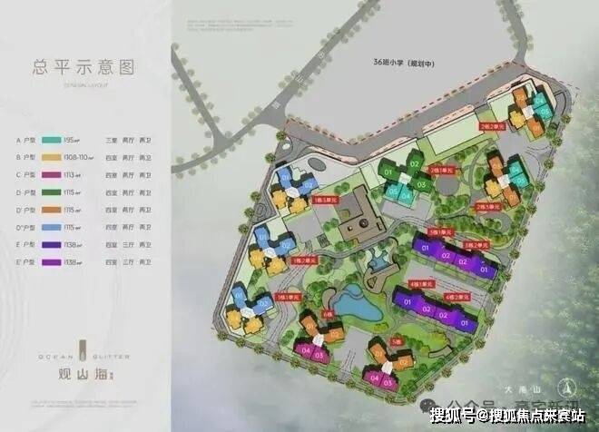 观山海家园项目规划由12座住宅楼+裙房商业+花园景观廊架主体组成,1栋1/2/3单元23-24层,2梯4户;2栋1/2/3单元19-24层,2梯5户,3栋1/2单元和4栋1/2单元17层,2梯2户;5/6栋25层,2梯4户;