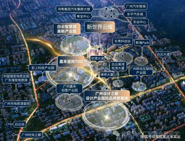 与此同时,嘉禾望岗、广州设计之都、白云智慧城等形成千亿产业集群,虹吸设计、科创人才,荟萃大量城市精英。项目踞白云新城黄金中轴轴心枢纽,承载CBD总部经济发展利好。