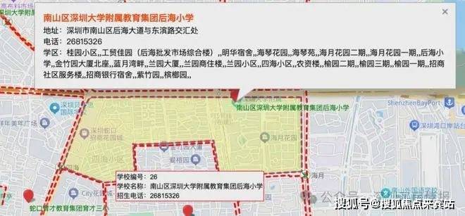 对应蛇口育才教育集团育才二中、南山区深圳大学附属教育集团后海小学。