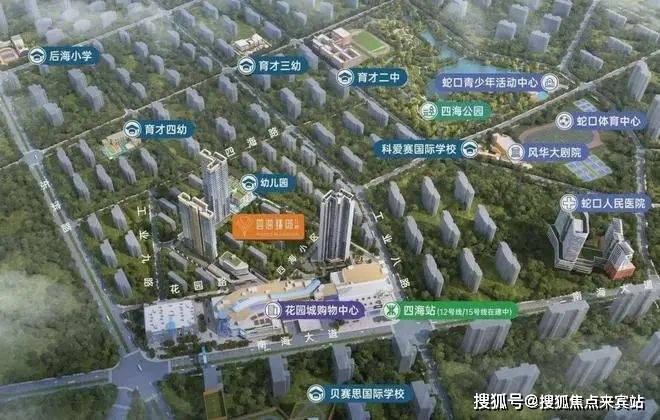 毗邻四海公园及大南山公园,聚集“山海廊园”13处山海城市景观资源。3山:大南山、小南山、赤湾山1海:深圳湾1廊:深圳湾约15公里滨海长廊8园:四海公园,荔林公园、女娲滨海公园、南山公园、深圳湾公园、古炮台公园、蛇口山公园、蛇口文体公园
