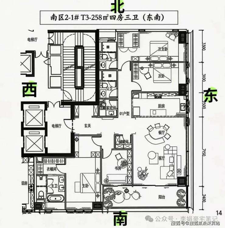 305㎡:延续北区爆款基因,优化玄关与次卧动线,东南向+超大阳台的组合依然无敌。