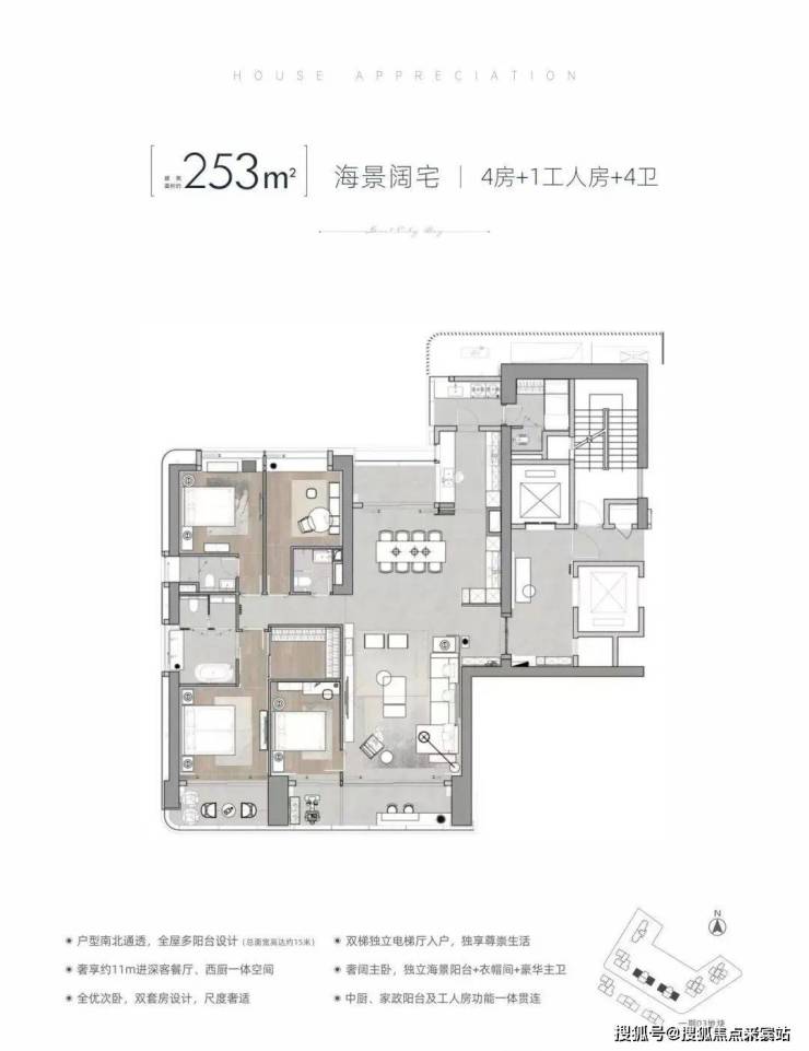 183平做了4房2厅3卫的房型,西南向,有一个公卫是没有窗户的。位于5-25层,价格1900-2300万。