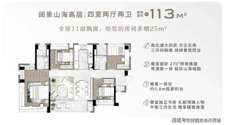 项目整体包含10栋8-10F低密洋房、7栋阔景山海高层、3栋瞰海大平层,共20栋楼。是琴澳滨海CBD最后一块可开发的纯住宅用地,产品为建面113-246㎡四至五房产品,均为高品质精装修交付