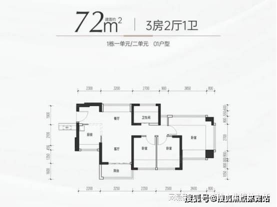 【户型】建面约72㎡三房两厅一卫/约82㎡三房两厅两卫/约95㎡三房两厅两卫