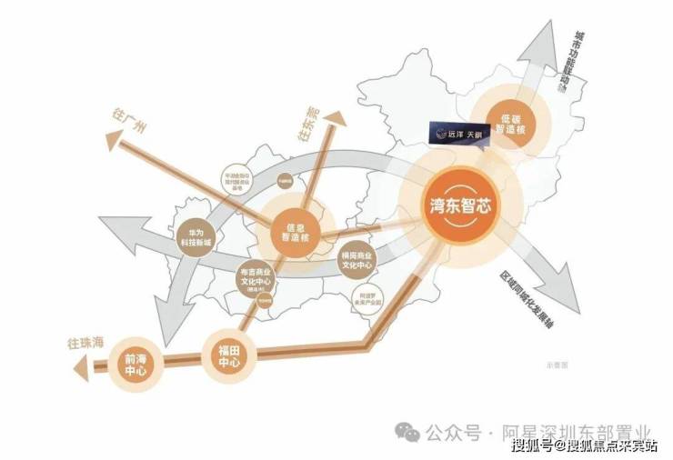 龙岗中心城大运深港国际科教城将联袂打造为“湾东智芯“,加上广深科创走廊重要节点、“低碳智造核”重要组成部分的国际低碳城,未来将承载着深圳东部高新产业升级的重任,助推区域腾飞。