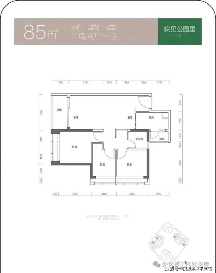 85㎡三房一卫:经典竖厅+双开间阳台,东南看公园,总价310万起,刚需上车首选