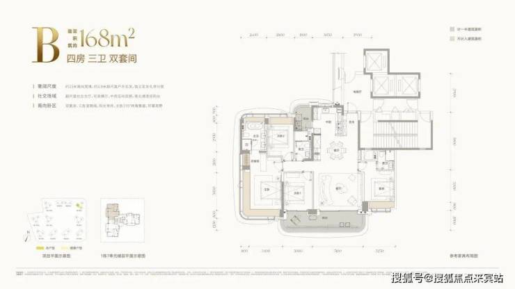 168㎡ 四房三卫 46席