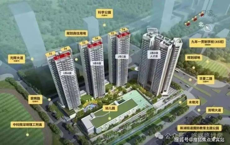 项目坐拥“生态公园+市级文体”的双重休闲配套,打造“科技+生态”的高品质生活体验。生态资源方面,北侧紧邻的科学公园占地面积约208公顷(208万㎡),总投资约20亿元,北翼已开放,南翼建设中,园内规划有约9.5万㎡日之湖、1.4公里环湖岸线、1.6公里立体景观廊道、1公里长蝴蝶谷湿地等设施,等同于福田中心区莲花山公园的区域生态地标地位,将打造为深圳北部的“绿色心脏”。周边还环绕东周文化公园、木墩公园、翠湖公园、光明新城公园等10余个生态节点,全区人均公园面积达30.85㎡,远超深圳平均水平。文体配套上,可近享深圳国际美术馆(在建)、深圳科技馆(新馆,2025年5月1日已开放)、科学城体育中心(在建)、光明文化艺术中心等市级高端设施,其中深圳科技馆(新馆)与科学城体育中心可满足市民运动、竞赛、科普、文化娱乐等多元化需求,光明文化艺术中心则为居民提供艺术欣赏与文化交流的平台。