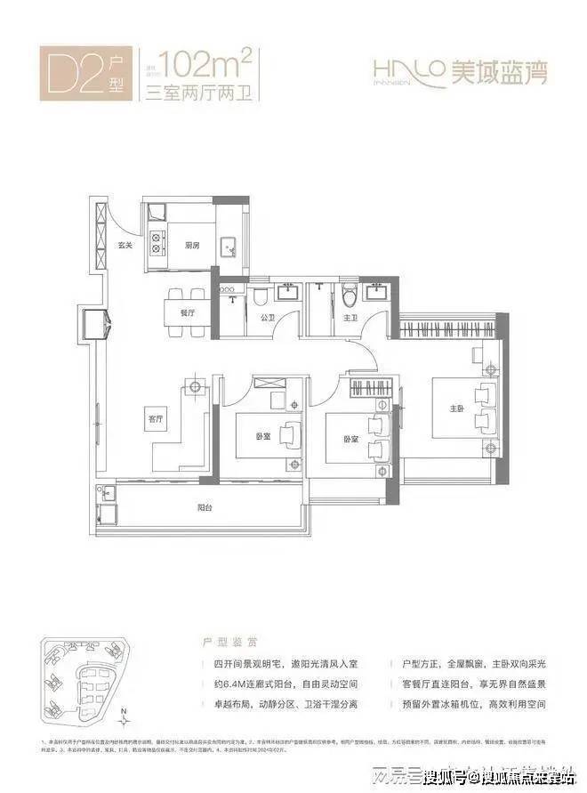 98㎡三房两厅两卫(D3户型)美域蓝湾售楼处电话:400-150-5057